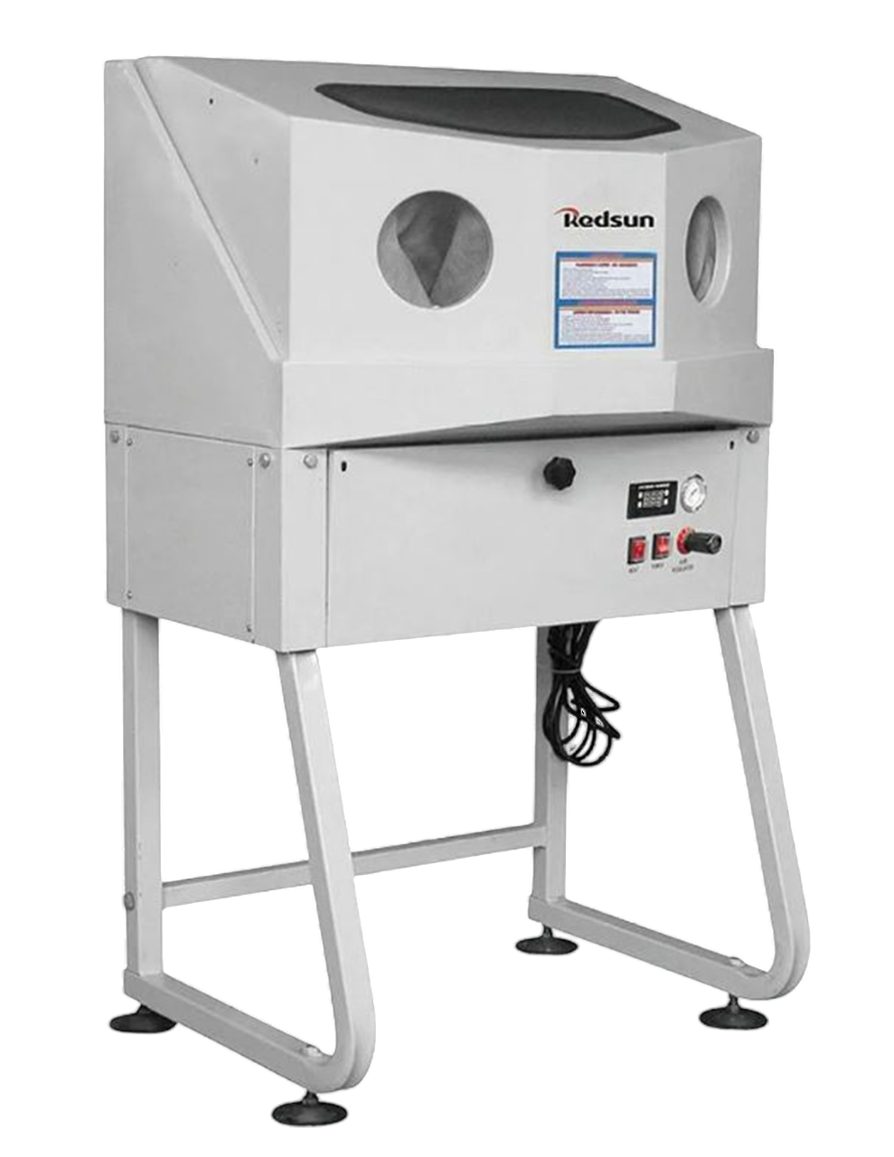 Cabina cerrada de gran tamaño con alta protección contra salpicaduras y olores, equipada con pistola de lavado neumática, sistema de calentamiento de solvente hasta 60 °C para mayor eficiencia, iluminación fluorescente y ventilación externa para mejor visibilidad y seguridad.
